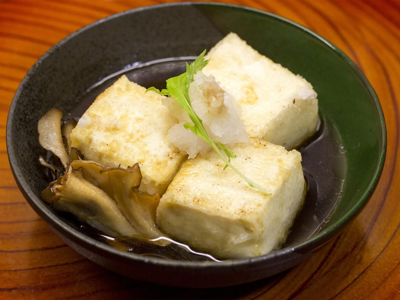 国産大豆100%と天然にがりから作った手作り豆腐を揚げ出し豆腐に仕上げました。- 揚げ出し豆腐