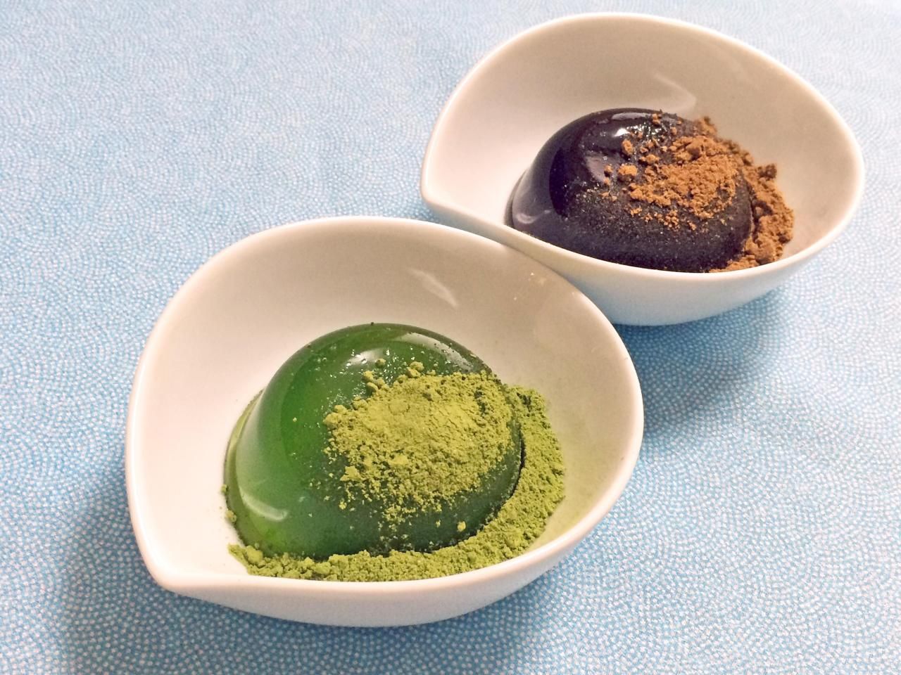 抹茶わらび餅と黒わらび餅のどちらかをお選びいただけます。- わらび餅